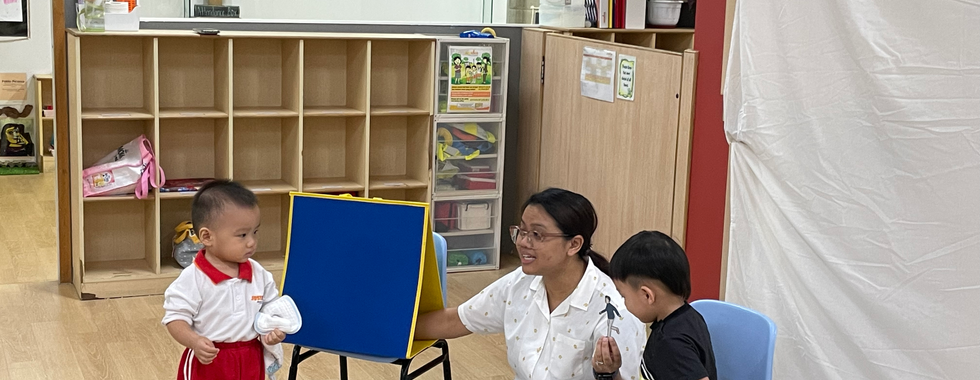 The objective of the workshop was to allow parents to experience the integration of learning domains in a lesson through a mock-up lesson. It provided an opportunity for home-school partnership as the parents are encouraged to attend together with their child. Through this workshop, I displayed my strengths in story telling by using varying tones of voices, large movements and loud expressions. Another strategy I used was inviting children to retell the story using a storyboard. This provides them an opportunity to reflect their understanding of the storyline and recap the characters and story sequence.